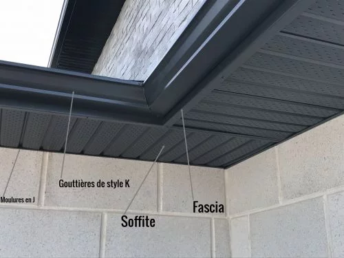 Le choix des matériaux influence directement la longévité d’un système extérieur. L’aluminium reste une option solide et fiable. La garniture de fascia en aluminium protège efficacement les bordures du toit contre l’humidité. Elle résiste bien aux variations climatiques. Pas parfait, mais proche. Une finition nette améliore aussi l’apparence générale de la maison.